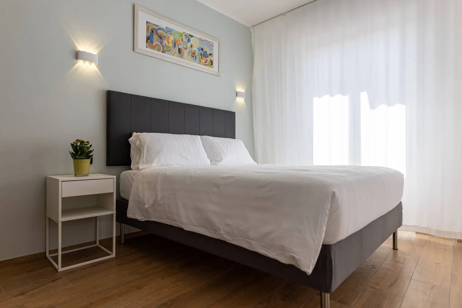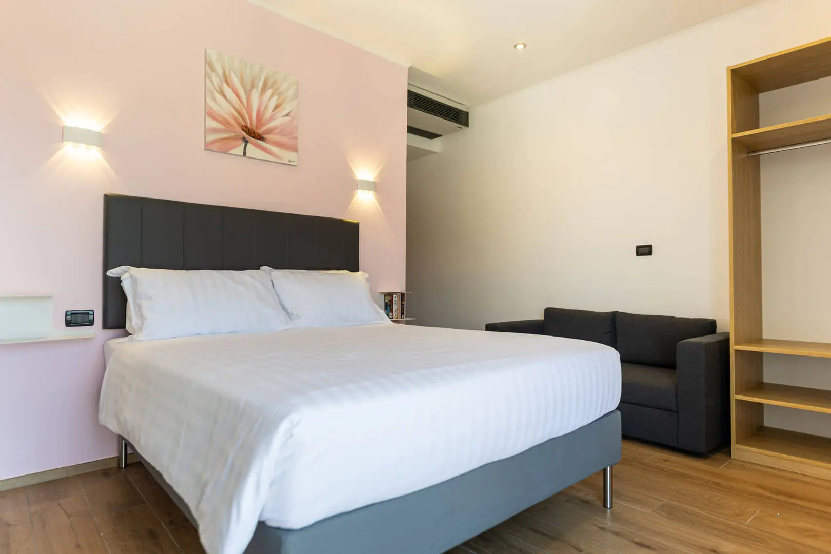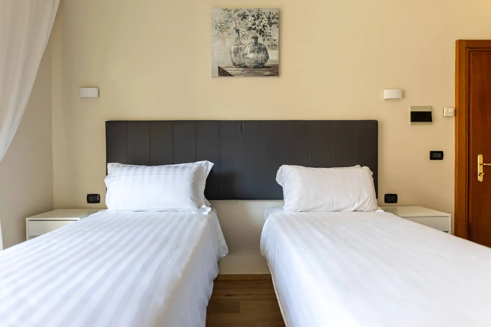 La nostra camera Matrimoniale è pensata per chi viaggia in coppia o con un collega e desidera un ambiente piacevole e funzionale. I colori neutri e gli arredi essenziali creano un’atmosfera rilassante, perfetta per staccare la spina dopo una giornata di incontri o spostamenti. Il bagno privato, la connessione Wi-Fi veloce e la climatizzazione autonoma garantiscono il massimo comfort. L’ideale per dormire bene e ripartire con energia.